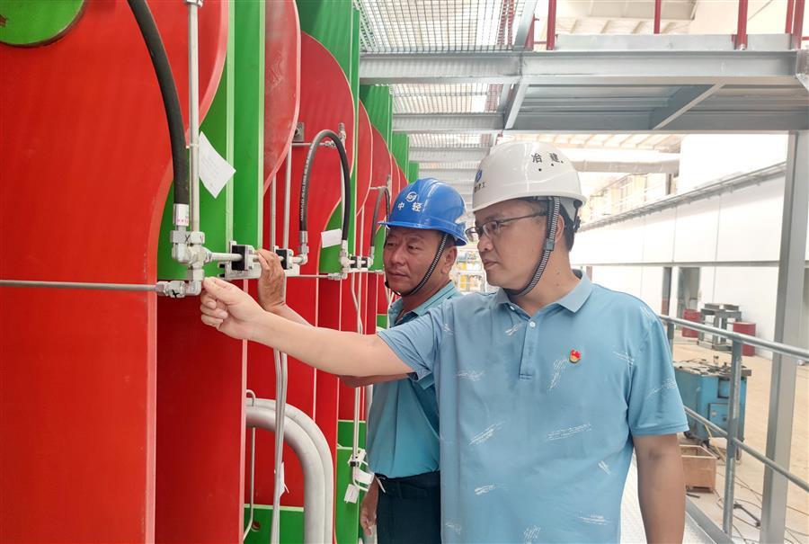 黃翔峰(右一)正在檢查項(xiàng)目