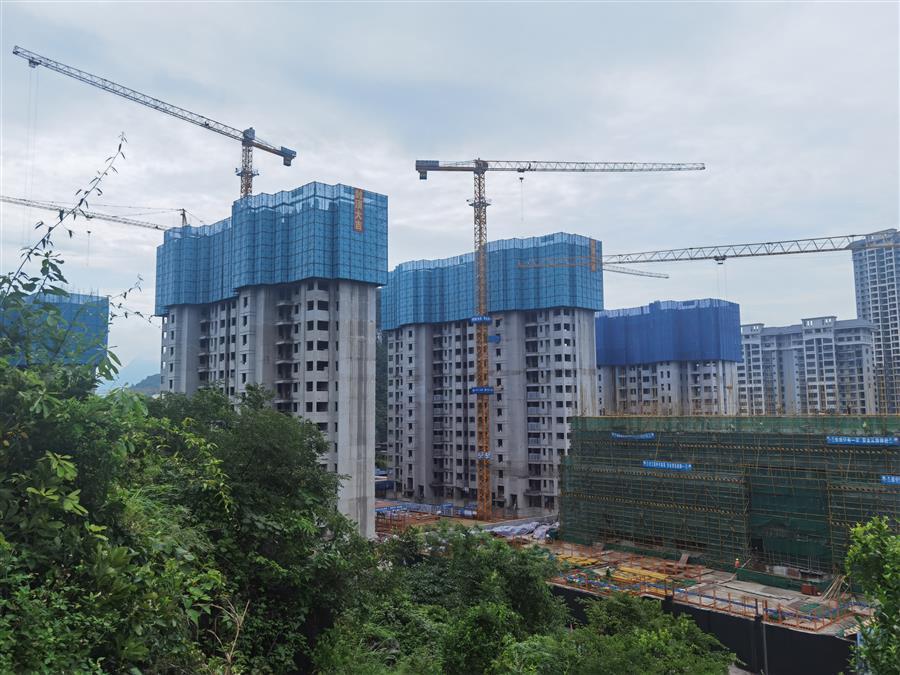 目前,該項目已有9棟住宅樓結(jié)構(gòu)封頂,7棟高層主樓即將完成主體結(jié)構(gòu)施工,正在有序進入裝修階段。