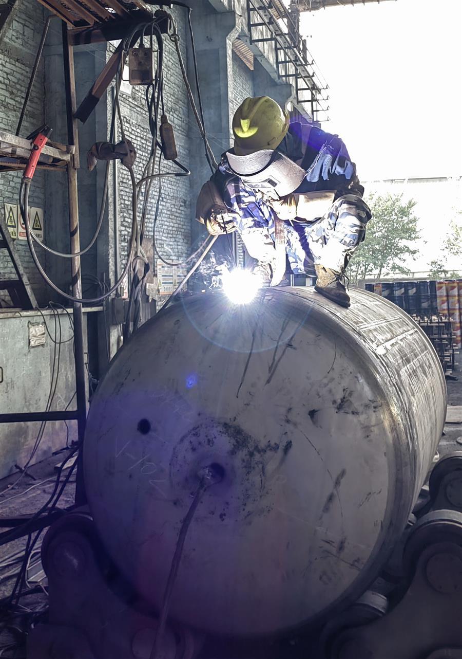 因節(jié)前承接的廣西柳鋼環(huán)保公司鋼渣廠1#廠房氣窗及3-11#柱屋面鋼結(jié)構(gòu)與彩瓦更換工程的鋼結(jié)構(gòu)預(yù)制加工、東莞市鵬錦機械科技有限公司15臺壓力容器制作需要在春節(jié)后交貨,壓力容器制造廠生產(chǎn)車間的施工人員、管理人員在大年初四就開始進入了緊張繁忙的工作狀態(tài)。焊接、打磨相互銜接,作業(yè)有序,全力推進設(shè)備趕制工作,現(xiàn)場好不熱鬧。工人們表示,能高質(zhì)量、高效率完成好制作任務(wù),也是一種快樂。