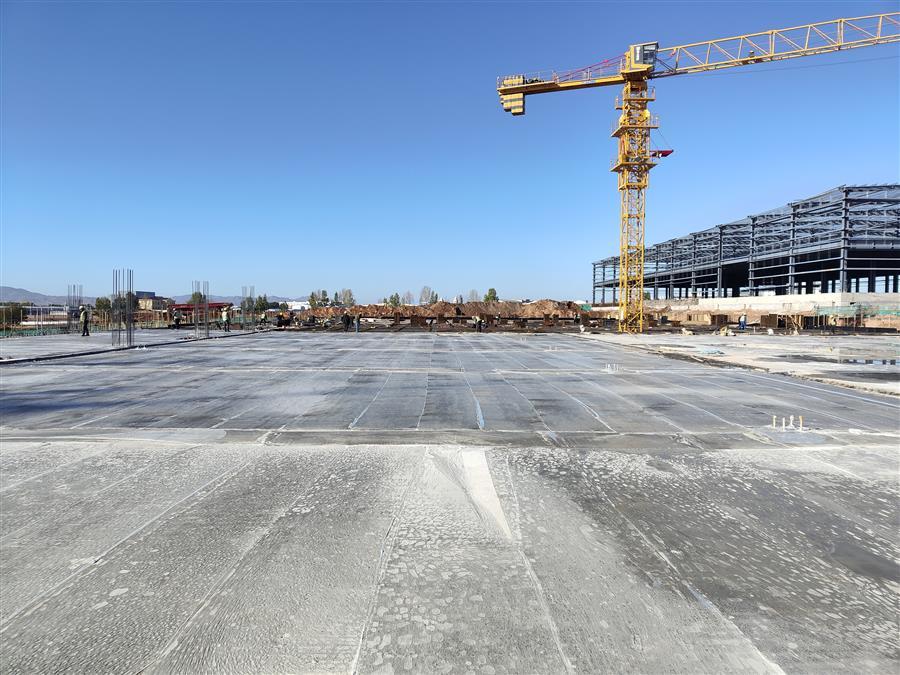 目前,項目2號冷庫地下室滿堂架搭設(shè)完成100%,地下室模板安裝完成90%,地下室頂板鋼筋綁扎完成60%,地下室頂板混凝土澆筑30%。2號配送中心鋼結(jié)構(gòu)檁條安裝完成100%,樓承板完成95%,連續(xù)梁鋼筋完成100%,連續(xù)梁混凝土澆筑完成70%。2號研發(fā)中心CFG樁樁間土開挖樁頭破除100%。