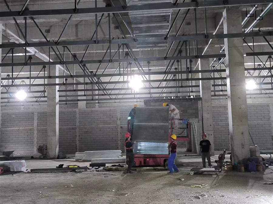 目前,項目1#聯(lián)合廠房鋼結(jié)構(gòu)轉(zhuǎn)換層焊接安裝已完成70%;消防管道安裝完成60%;墻體砌筑及二次結(jié)構(gòu)施工完成90%;內(nèi)外墻抹灰完成40%;暖通管道制作、安裝完成30%;屋面保溫層完成80%。