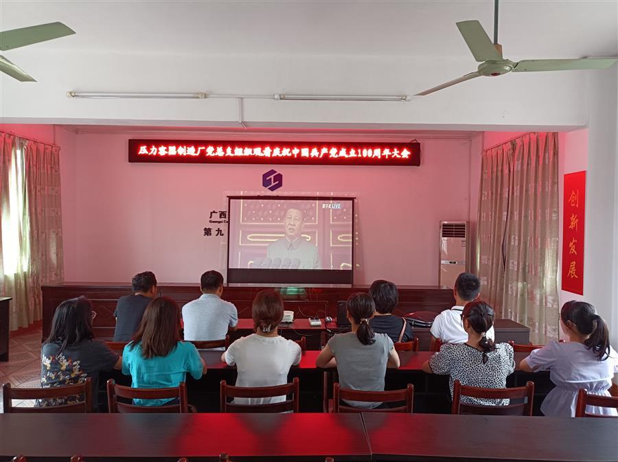公司黨委組織員工收看慶祝中國(guó)共產(chǎn)黨成立100周年大會(huì)直播。公司領(lǐng)導(dǎo)班子成員覃振華、蒙勝益、賴海標(biāo)、廖立波、唐峰、阮仁勝、周善學(xué)、何勇,代財(cái)務(wù)總監(jiān)李芝霞,副調(diào)研員劉國(guó)江以及各基層黨組織黨員以集中或個(gè)人收看方式觀看大會(huì)直播。