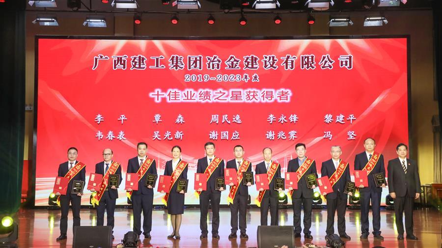 慶典表彰了冶建公司2019~2023年度卓越貢獻(xiàn)獎、突出貢獻(xiàn)獎、十佳業(yè)績之星、優(yōu)秀管理之星、先鋒模范標(biāo)兵獲獎個人。