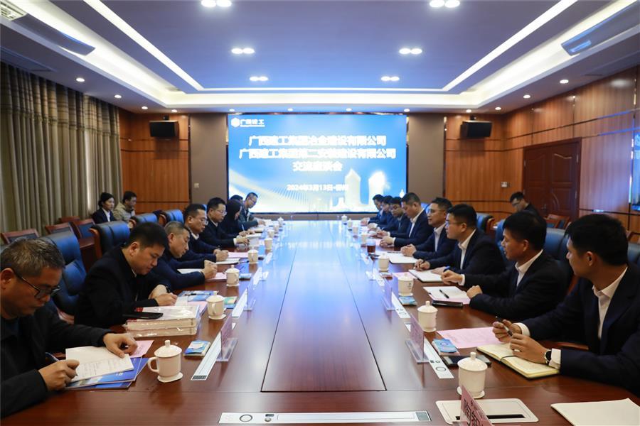 3月13日,冶建公司董事長(zhǎng)、黨委書記覃振華帶隊(duì)到廣西建工集團(tuán)第二安裝建設(shè)有限公司開(kāi)展工作交流。二安公司董事長(zhǎng)、黨委書記歐志永,副總經(jīng)理陶興南,冶建公司黨委副書記、紀(jì)委書記、工會(huì)主席賴海標(biāo)參加。