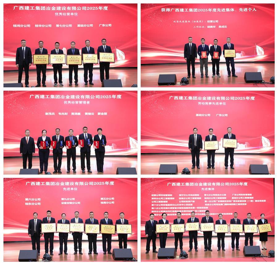 會上表彰了公司2025年度先進(jìn)單位、集體及個人,勞動競賽先進(jìn)單位、項目部及個人,優(yōu)質(zhì)工程、優(yōu)秀科技成果、安全文明標(biāo)準(zhǔn)化工地等。桂鴻分公司、桂華分公司、第七分公司、第一分公司等5家單位作經(jīng)驗(yàn)交流發(fā)言。