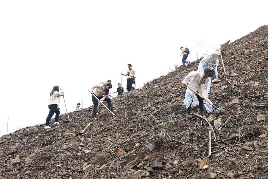 活動現(xiàn)場,青年志愿者分組分片區(qū)開展植樹活動。各小組團員青年分工協(xié)作、默契配合,鏟土挖坑、立苗填土,個個熱情高漲、干勁十足,活動現(xiàn)場氣氛熱烈。經(jīng)過大家熱火朝天的忙碌,一排排新種樹苗有序“落根”,山坡上煥發(fā)出盎然生機。