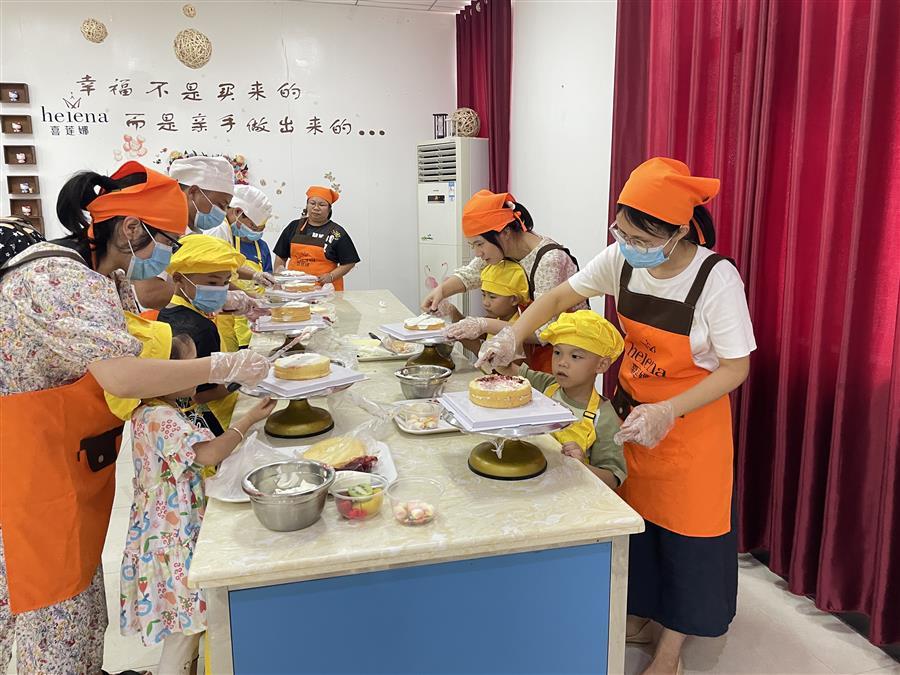 活動現(xiàn)場,家長和孩子們聆聽了紅色詩歌朗誦,現(xiàn)場共同繪制了主題畫作。并在講解員的帶領下參觀了中央工廠,了解了糕點生產(chǎn)過程。參觀后,大家一起觀看專業(yè)糕點師的現(xiàn)場教學并體驗了蛋糕制作。一個小時后,一個個造型別致、想象奇特、富有童趣的親子蛋糕新鮮出爐。家長與小朋友們手捧自己制作的蛋糕拍照,現(xiàn)場氛圍其樂融融。